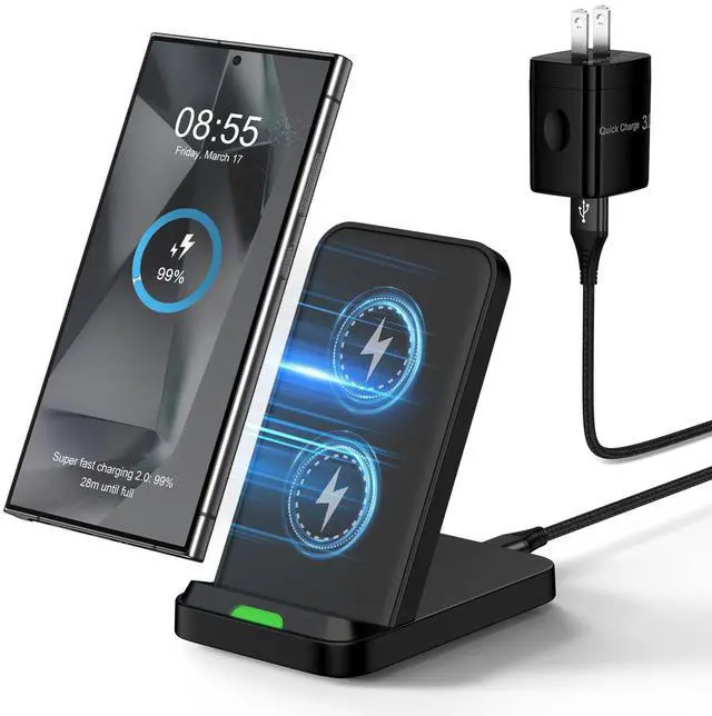 Wireless Charger Stand for Moto G Stylus 5G 2025/2024,Moto Edge/Razr 2025,Moto G Power 5G 2025/2024,15W Fast Charging Station with QC Adapter for Samsung Galaxy S25 S24FE,iPhone 17 16 15,Pixel 10 Pro