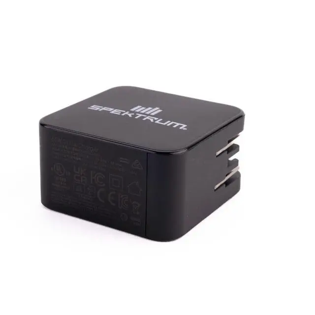 The Spektrum 65W Power Block stands out from traditional USB-C converters with its ability to deliver higher power in such a small size. This compact device, powered by Gallium Nitride electronic components, is perfect for converting AC input power to USB-type DC output. Its foldable AC input terminals make it easy to store. It's an ideal companion for the Spektrum S100 1x100W USB-C Smart Charger (SPMXC2090).
