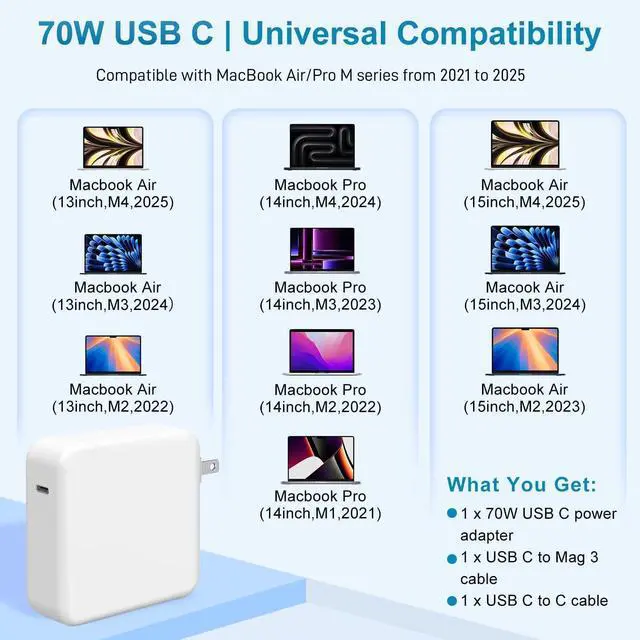 ![Alt view image 3 of 6 - Charger for MacBook Air 15 13 Inch Mac Book Pro14 Inch M5 M4 M3 M2 M1 2026 2025 2024 2023 2022 2021 70W USB-C to Mag 3 Power Adapter Include 6.6FT Type C to Magnetic 3 Cable [Original Quality]](https://c1.neweggimages.com/productimage/nb640/C67GD2604190Y9OJ6EE.jpg)