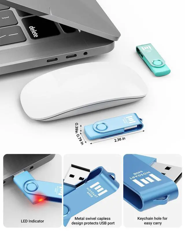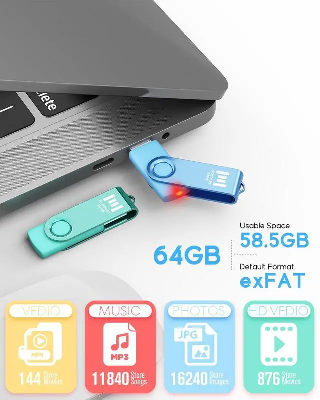 The package includes 2pcs of 64GB neutral pastel color thumb drives. You can easily categorize the content on the flash drive by its color.