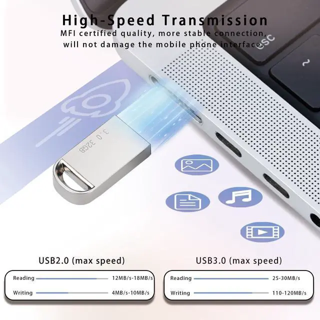 High Speed Transmission: The write speed of the USB stick is 20-30MB/s, and the read speed is 110-130MB/s. Performance may vary due to host devices, usage conditions, and other factors