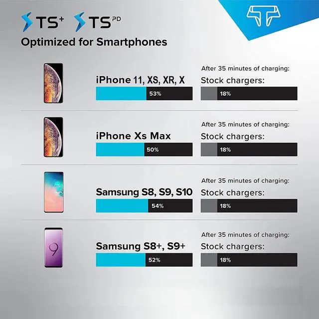 - 18W TS+ Fast Charge USB Port: Fast charge your smartphone battery from 0% to 54% in 35 Minutes.