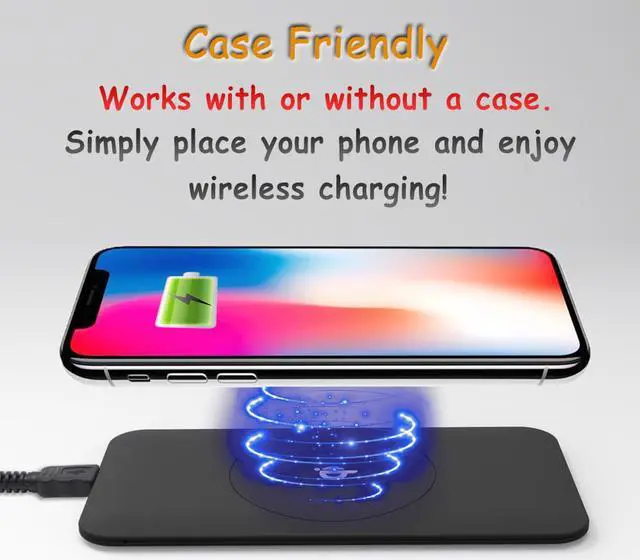 Keep your devices charged with this Fuji Labs wireless charger. It works with or without a case, so just place your Qi-enabled device on the pad and charging begins on contact. And simply grab your phone when there is a coming a call or a new message - no more tethering by a cable.