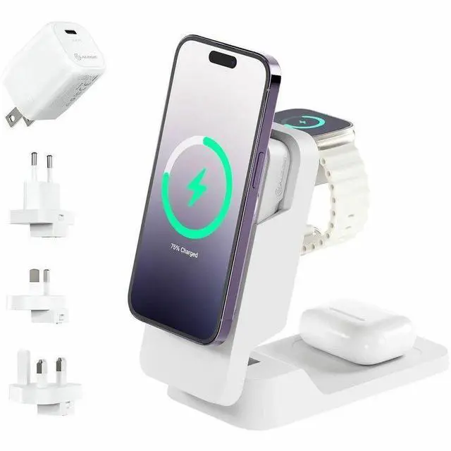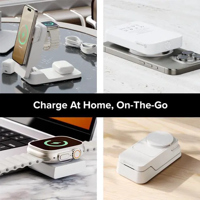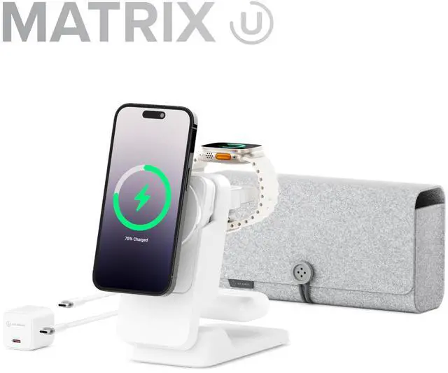 ALOGIC MATRIX FOLD 3-IN-1 TRAVEL CHARGER WITH 5, 000MAH MAGSAFE POWER BANK, WHITE