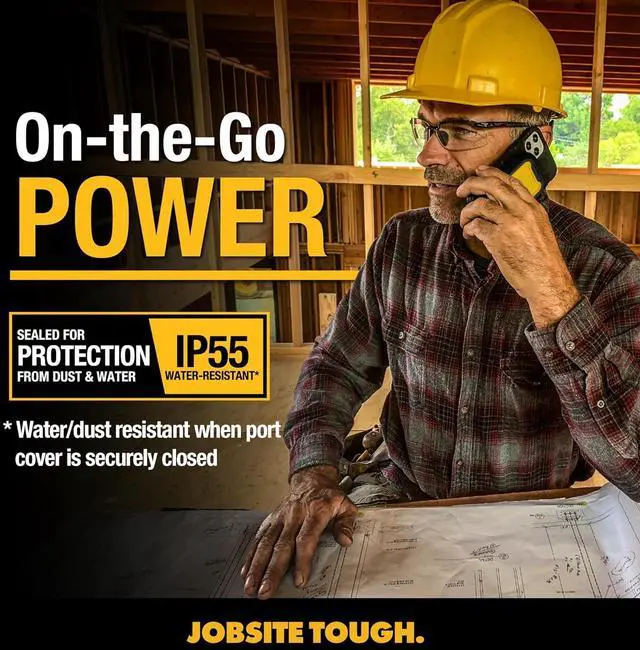 ^^IP55 Water/Dust Resistant: Don't worry about water or dust damage getting into the battery pack with the IP55 rating (when the port cover is securely closed). ^^Highly Impact Resistant and