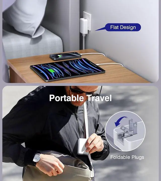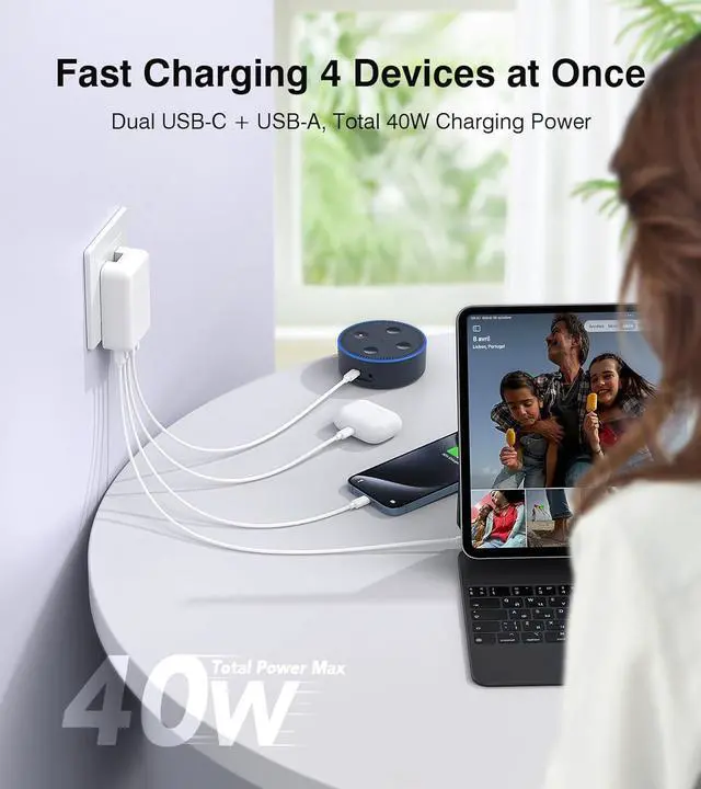 2-Pack Flat USB C Fast Wall Charger, 40W 4-Port PD 3.0 Slim Type C Cube Blocks Multiport Brick Dual Port PD+QC Plug Power Adapter for i-Phone 15/14/13/12Pro Max Plus Mini, AirPods, Android Phones, Tablet