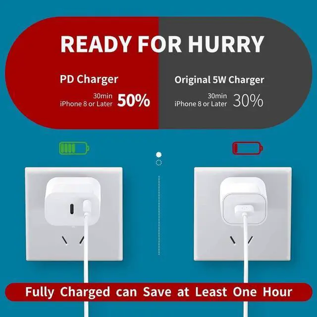 With power delivery 3.0 fast charging technology, charge your iPhone 13 up to 50% in just 30 minutes. 3X faster than 5W charger.