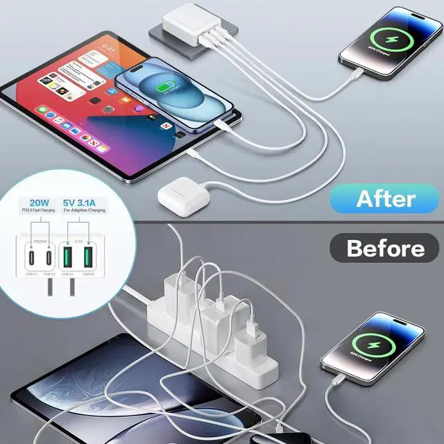 ![Alt view image 7 of 7 - IHDAPP Flat USB C Wall Charger [3 Pack], Slim Fast Charging Block, 40W 4-Port USB C Charger Block Type C Power Adapter with Foldable Plug Compatible for i-Phone Android Cellphones Tablet PC.. (White)](https://c1.neweggimages.com/productimage/nb640/AMYES24052904UQM096.jpg)