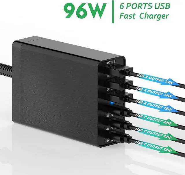 5, Support 6 devices charged at the same time, each port intelligently identifies your device and seeks a maximize its charge speed.