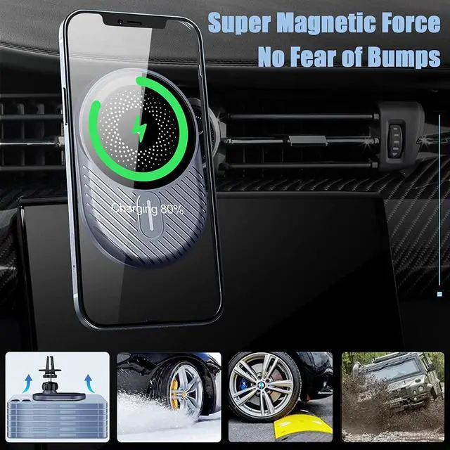 - 15W Fast Wireless ChargingBOCLOUD magsafe car mount charger adopts the latest Magsafe Tech and smart charging chip, it can provide your iphone 13/12 series with up to 15W charging speed with QC3.0 car adapter (24W Max) we present.(Note: Please use the official Mag-safe case or withou.