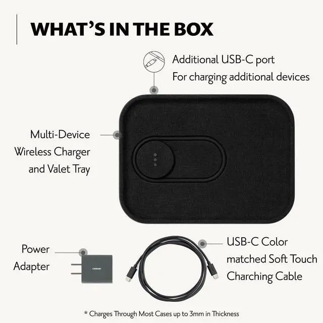 LIVING: Simplify your life with a multi-device charger that has a sleek, bevel-edged valet tray for all your key items. Save time by having a designated spot for all the things you need before heading out the door. Function meets fashion with this multi-tasking charging tray. ^^PREMIUM, SUSTAINABLE