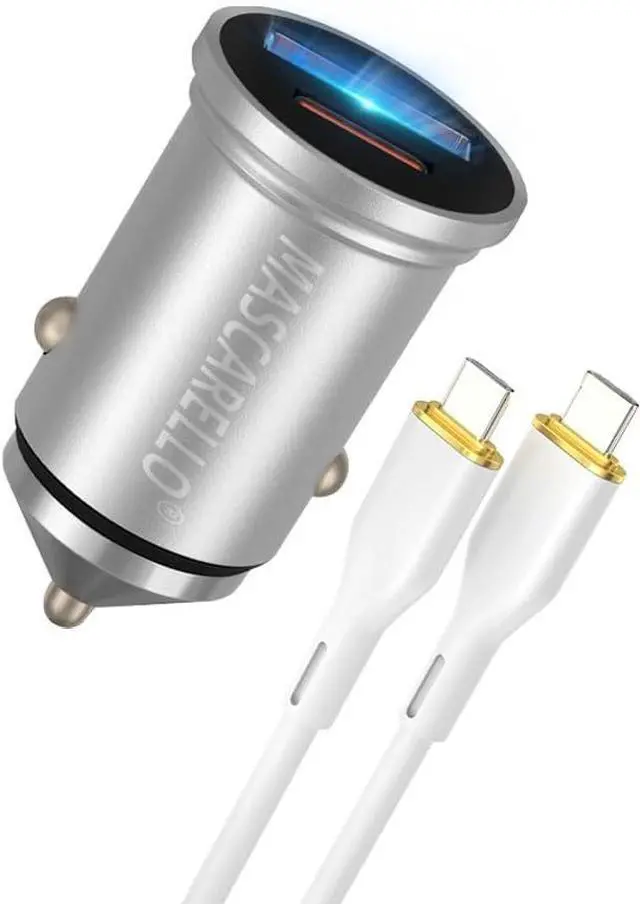 • COMLZD Mini Car Charger 40W USB C Fast Charging Adapter Compatible iPhone Type C Car Charger with Cigarette Lighter Plug Automobile Chargers for Cell Phone Car USB Charger Multi Port (Silver-1)