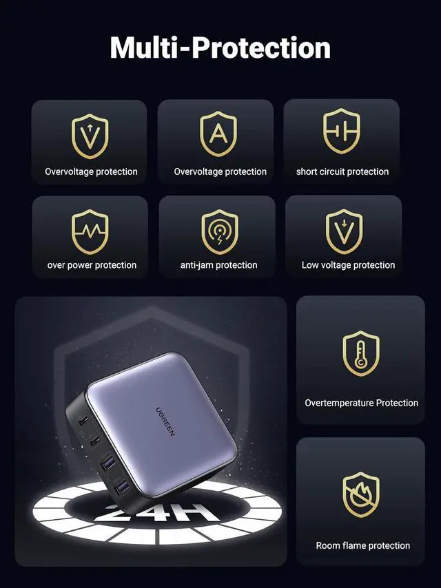 Total Safety & Reliability: Featuring a dynamic temperature sensor to monitor temperature, the intelligent PMW chip adjusts power output to protect your devices. The UL94-V0 housing and efficient heat dissipation structure ensure safe charging at night