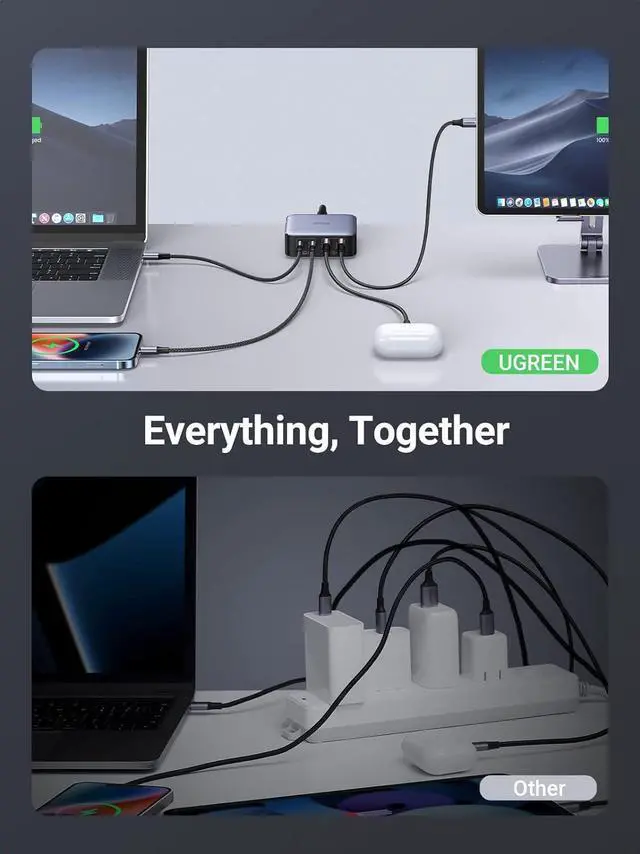 4-in-1 Multiport Charger: With 2 USB-C ports and 2 USB-A ports, this Ugreen charging station supplies up to 65W of power to phones, tablets, laptops, and more! All at the same time