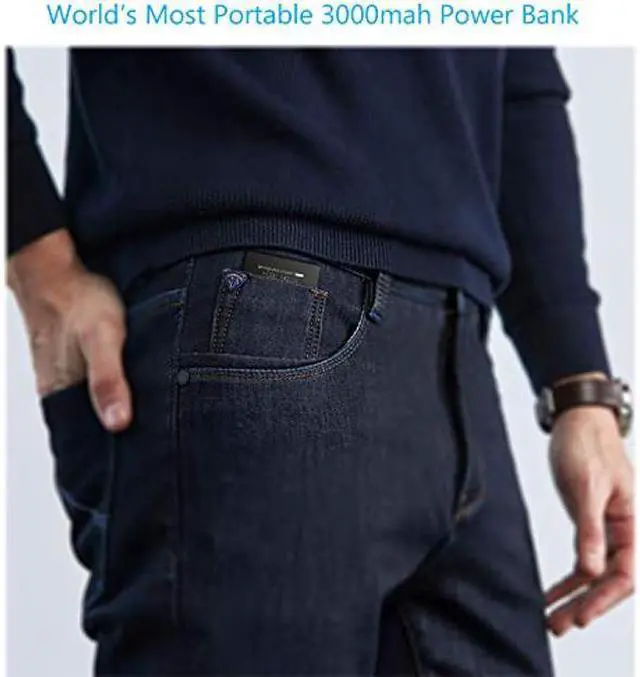 [Smallest 3000mAh Power Bank] - Pocket Size 0.35" x 2.1" x 3.3", Light Weight only 2.2 Oz. Its compact size is perfect for everyday use. It can be put into pocket easily.