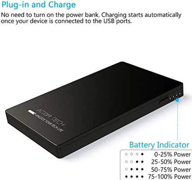 Attom Tech USB Output Super Slim Power Bank Ultra Thin 3000mAh Portable Charger, Micro USB and USB-C Dual Input Ports Mini External Phone Battery Pack Small Emergency Phone Power Backup (Black)