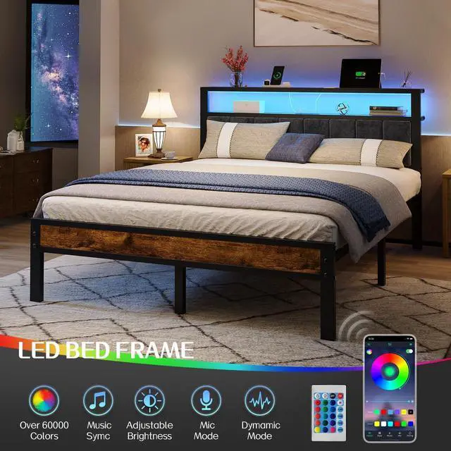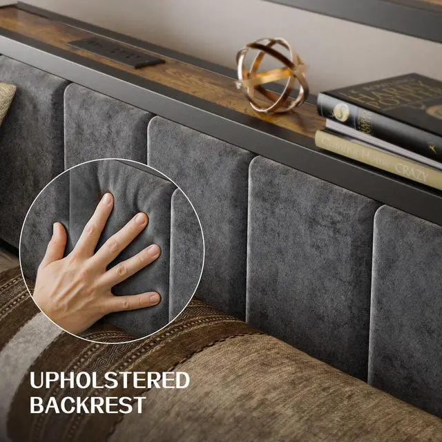 Headboard with Integrated Charging Station: This headboard features 2 standard power outlets, 2 USB-A port, and 1 USB-C port, allowing you to conveniently charge multiple devices at oncesmartphones, tablets, laptops, and bedside lamps. Say goodbye to tangled cords and hard-to-reach wall socketseverything you need is within arms reach.