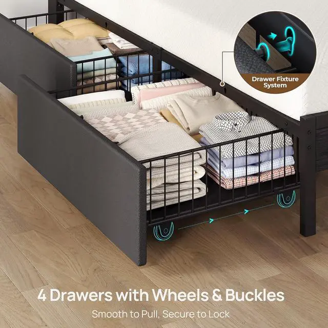 Under-Bed Storage: The thoughtfully designed 10.5-inch under-bed storage maximizes space, providing ample room for belongings and effortlessly contributing to a neat and organized bedroom