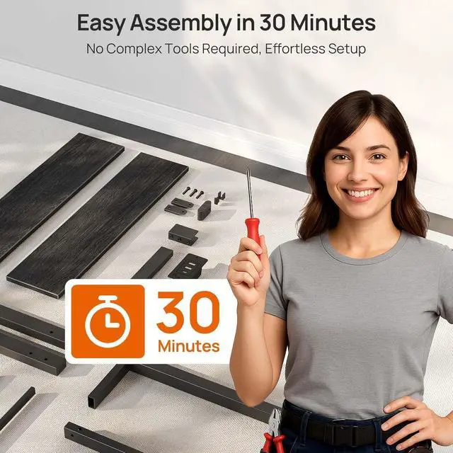 Sturdy Bed Frame: With 13 secure heavy-duty metal slats, this platform bed ensures stability, eliminating any wobbling or shifting. Supported by nine sturdy legs, it facilitates even weight distribution, preventing mattress sagging for an improved sleep experience and refreshed wake-ups. For the ideal fit and support, we recommend a 10-inch mattress, though the frame accommodates mattress thicknesses from 6 to 10 inches. Remarkably sturdy, with a weight capacity of 700 pounds. Frame made of FSC-Certified wood