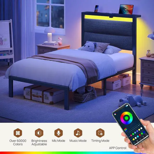 Customizable RGB LED Bed Lighting Enjoy 20-color RGB LED lights with 21 dynamic modes. Adjust brightness across 8 levels and control speed with 8 settings. Its perfect for creating a cozy, stylish bedroom or for reading and relaxing with mood lighting.