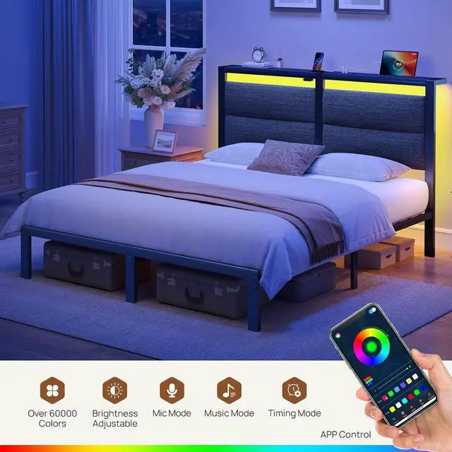 Customizable RGB LED Bed Lighting Enjoy 20-color RGB LED lights with 21 dynamic modes. Adjust brightness across 8 levels and control speed with 8 settings. Its perfect for creating a cozy, stylish bedroom or for reading and relaxing with mood lighting.