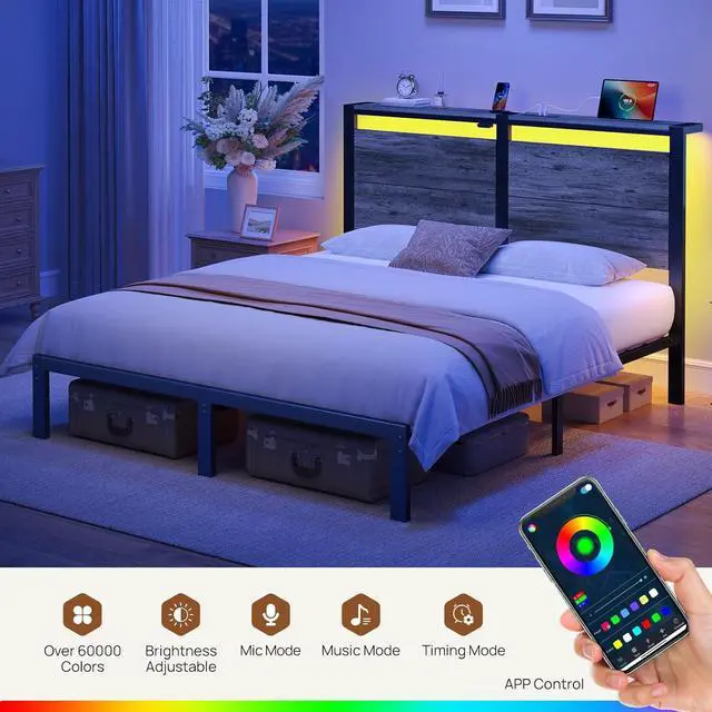 Customizable RGB LED Bed Lighting Enjoy 20-color RGB LED lights with 21 dynamic modes. Adjust brightness across 8 levels and control speed with 8 settings. Its perfect for creating a cozy, stylish bedroom or for reading and relaxing with mood lighting.