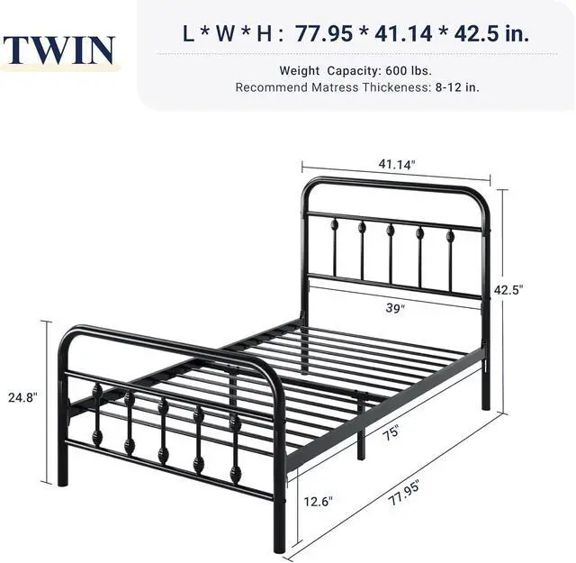 Easy to Assemble: This metal bed comes with all the necessary tools, and its straightforward design allows for quick installation in just 30 minutes. No box spring required