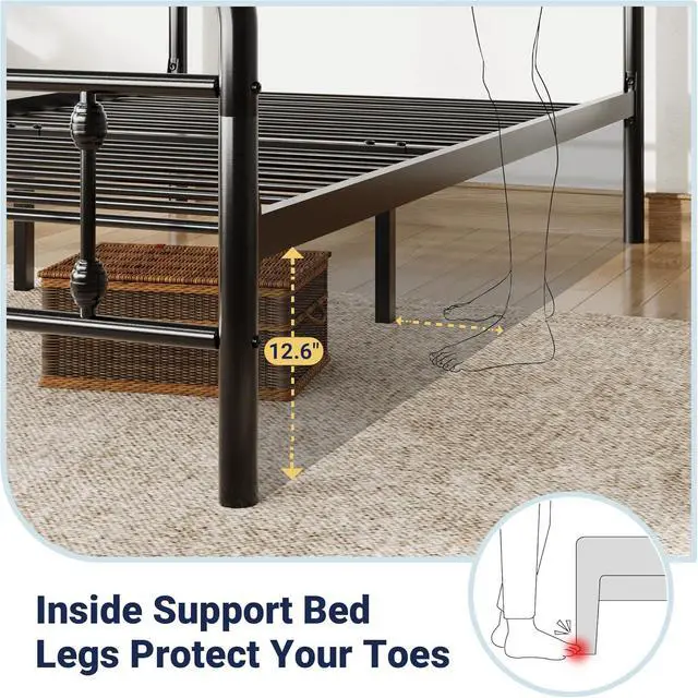 Spacious Underbed Storage: With a generous 12.6" of clearance, this metal bed provides ample hidden storage space to keep your bedroom neat and organized