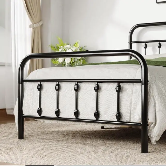 Victorian and Vintage Charm: The metal bed frame showcases gracefully curved lines and delicate round beads, blending modern style with retro charm. Its timeless design complements various home decor styles, including modern, traditional, farmhouse, and more