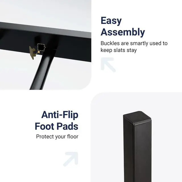 Sturdy and Sturdy: The robust metal framework of the bed is engineered to support heavy loads. Thick metal slats are securely fastened using a locking buckle design, ensuring a safe and relaxing sleeping experience. The powder-coated finish enhances the product's resistance to rust and wear