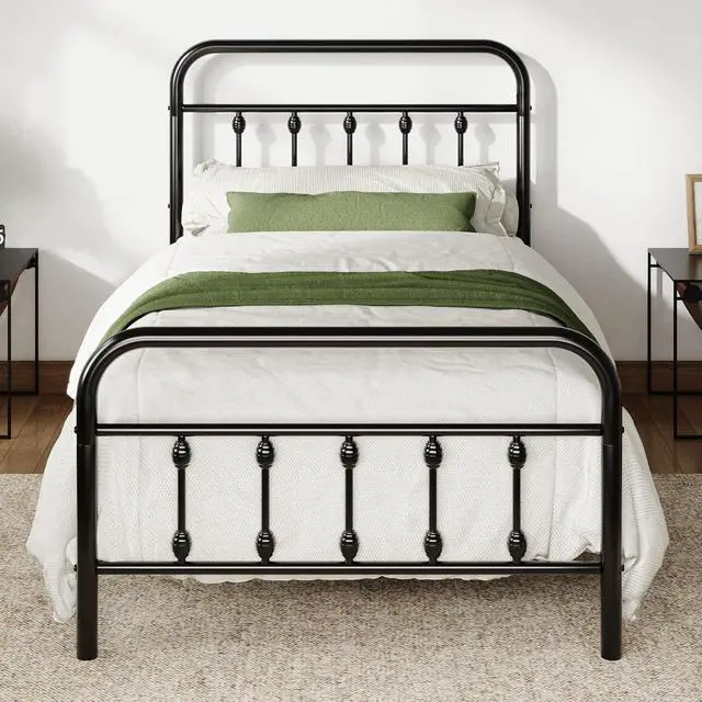 Allewie 14 Inches Twin Size Metal Platform Bed Frame with Victorian Style Iron-Art Headboard/Footboard, Mattress Foundation, Easy Assembly, Under Bed Storage, No Box Spring Required, Black