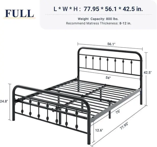 Easy to Assemble: This metal bed comes with all the necessary tools, and its straightforward design allows for quick installation in just 30 minutes. No box spring required