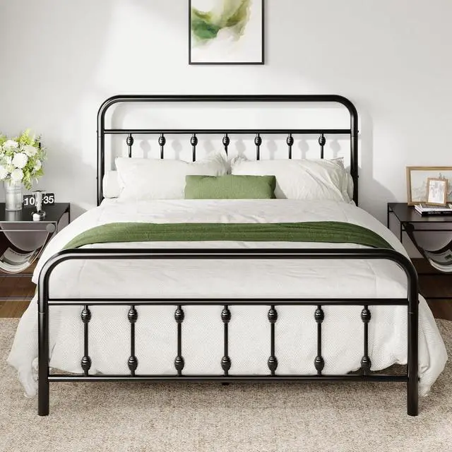 Allewie 14 Inches Full Size Metal Platform Bed Frame with Victorian Style Iron-Art Headboard/Footboard, Mattress Foundation, Easy Assembly, Under Bed Storage, No Box Spring Required, Black