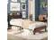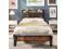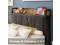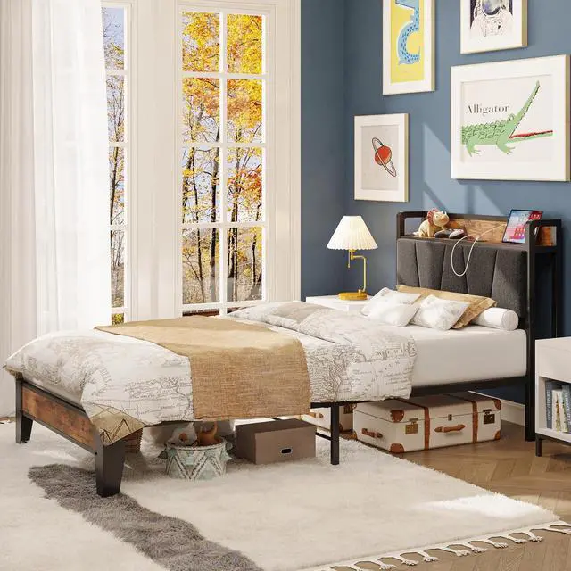 The vintage shelf and gray upholstered headboard combine practical and comfortable to match any style of the room. The bed frame made of FSC-Certified wood