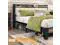 The vintage shelf and gray upholstered headboard combine practical and comfortable to match any style of the room. The bed frame made of FSC-Certified wood