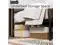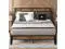 The vintage shelf and gray upholstered headboard combine practical and comfortable to match any style of the room. The bed frame made of FSC-Certified wood
