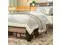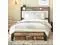 The vintage shelf and gray upholstered headboard combine practical and comfortable to match any style of the room. The bed frame made of FSC-Certified wood