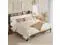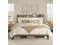The vintage shelf and gray upholstered headboard combine practical and comfortable to match any style of the room. The bed frame made of FSC-Certified wood