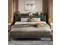 The vintage shelf and gray upholstered headboard combine practical and comfortable to match any style of the room. The bed frame made of FSC-Certified wood