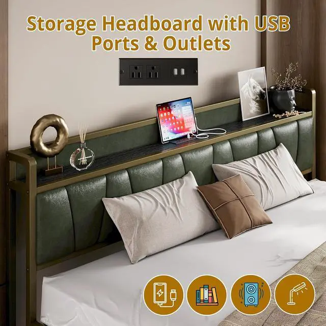 Two Standard Plug Outlets and USB Ports with Cable Management 4.9 ft long power supply cord. Make charging and common small items such as phones, glasses, and books within easy reach