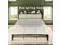 The vintage shelf and gray upholstered headboard combine practical and comfortable to match any style of the room. The bed frame made of FSC-Certified wood