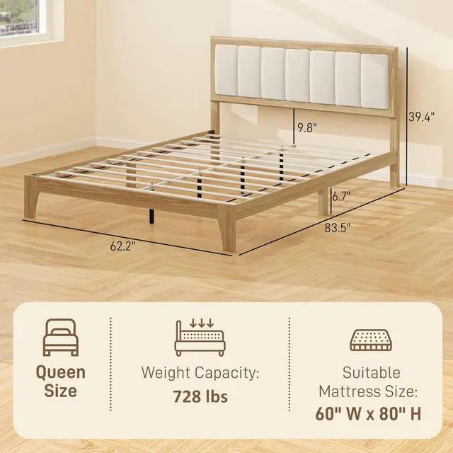 Effortless Assembly: This queen bed frame with headboard is designed for quick assembly. Expect to have it ready in about an hour with the help of clearly marked parts and detailed, step-by-step instructions