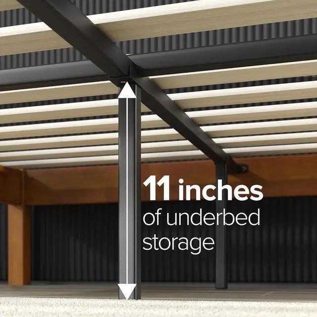 UNDER-BED STORAGE SPACE - This bed frame has 11 Inches under bed storage space, allowing you to keep belongings neatly tucked away while maintaining a tidy room