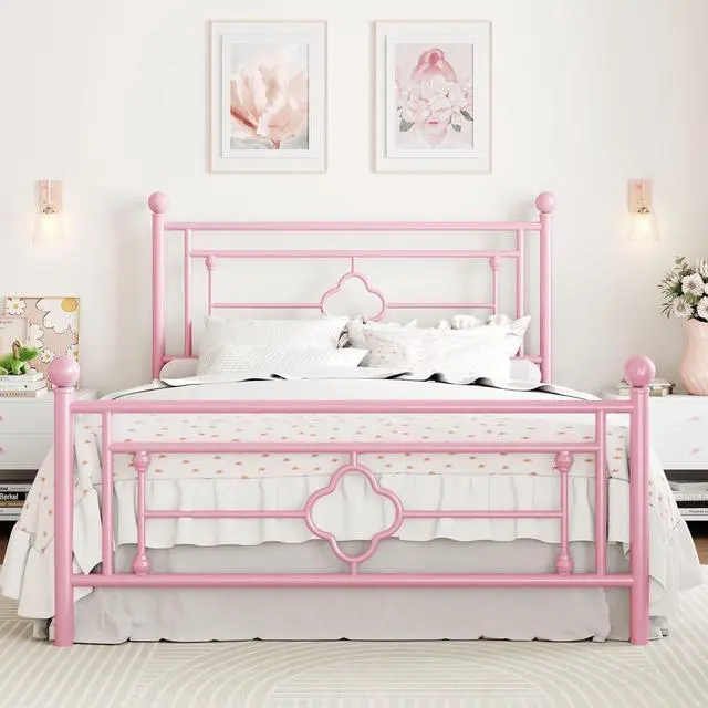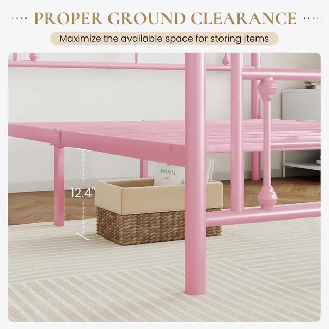 SHA CERLIN 14 Inches Queen Size Metal Platform Bed Frame/Vintage Iron-Art Headboard and Footboard/Mattress Foundation for Storage/No Box Spring Needed/Noise-Free/Easy Assembly/Pink