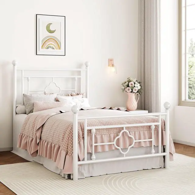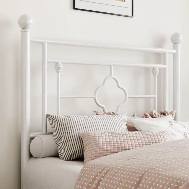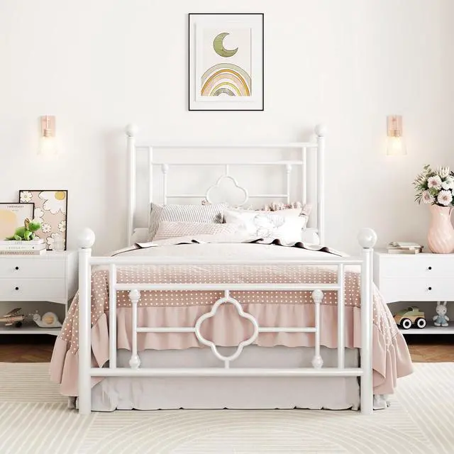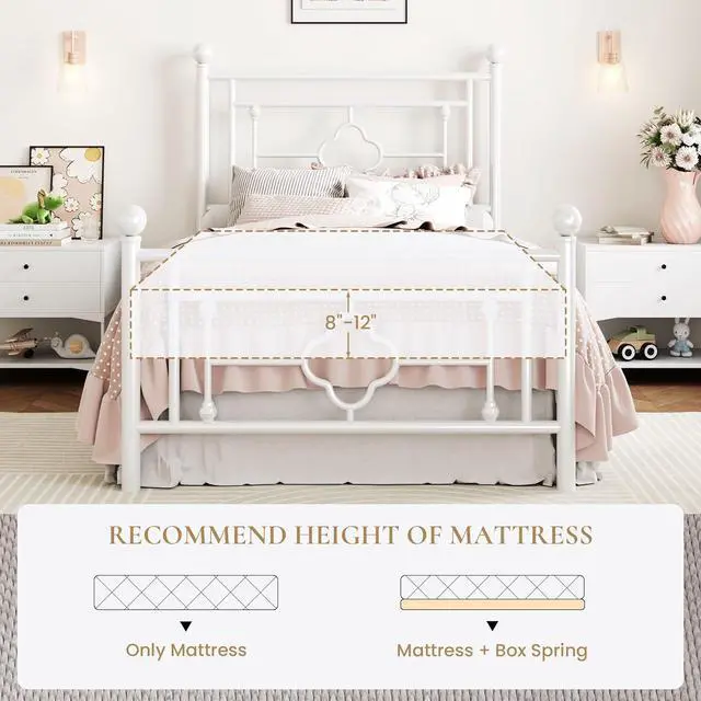SHA CERLIN 14 Inches Twin Size Metal Platform Bed Frame/Vintage Iron-Art Headboard and Footboard/Mattress Foundation for Storage/No Box Spring Needed/Noise-Free/Easy Assembly/White