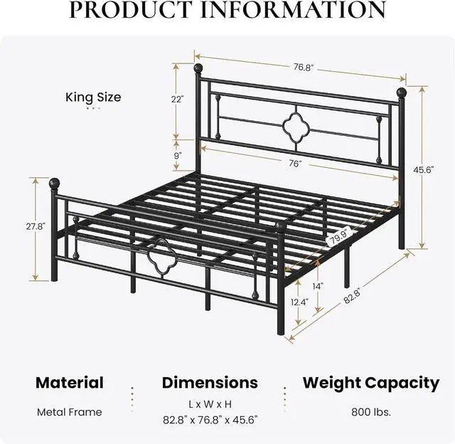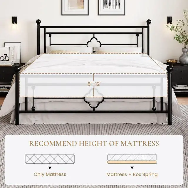 SHA CERLIN 14 Inches King Size Metal Platform Bed Frame/Vintage Iron-Art Headboard and Footboard/Mattress Foundation for Storage/No Box Spring Needed/Noise-Free/Easy Assembly/Black