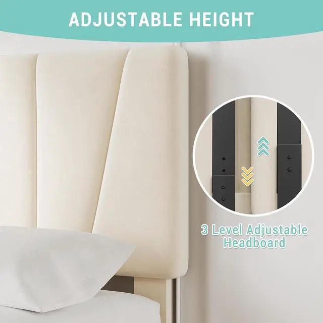 Adjustable Headboard (42.9"-45.7") Customize your twin size bed frame by raising or lowering the headboard to fit mattresses 8"-14" thick, ensuring ergonomic support for reading or lounging.