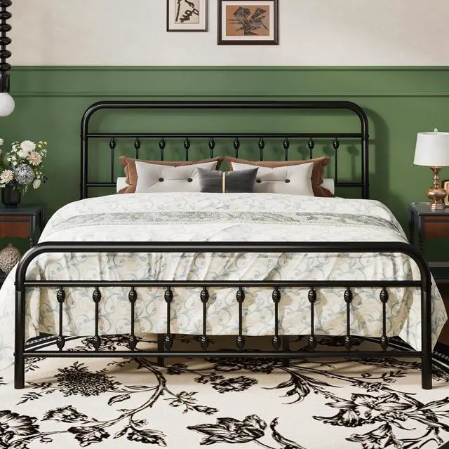 Victorian Design: With its sinuous curves and intricate beadwork, this metal bed frame captures the romance of Victorian design while embracing vintage character. A chameleon in any space, it enhances modern minimalism, rustic farmhouse warmth, or traditional opulence