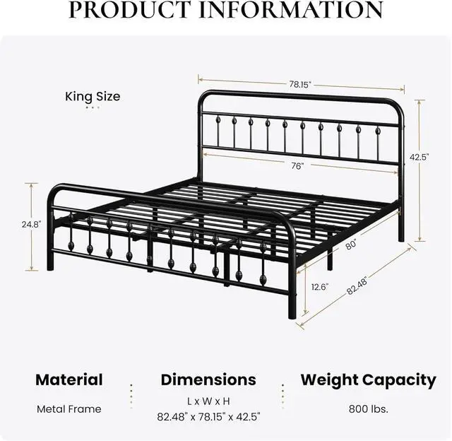 Quick & Simple Assembly: Designed for effortless assembly, this metal bed includes all required tools and features an intuitive design that lets you set it up in about 30 minutesno box spring needed