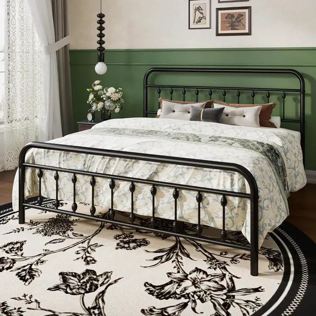 SHA CERLIN King Size Metal Platform Bed Frame with Victorian Style Iron-Art Headboard and Footboard, Easy Assembly, Under Bed Storage, No Box Spring Required, Black